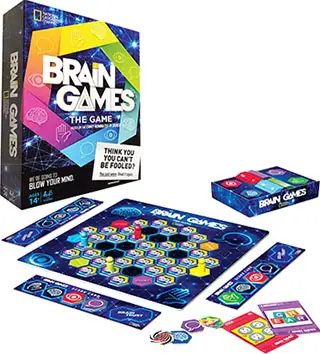 Pop out the 40 game tiles, and randomly place them face down - "Brain Games" side up - in the hexagon spaces on the game board. One tile per space. START spaces remain empty.
