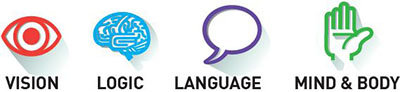 Sort the deck of Game Cards by category to form 4 smaller decks: VISION, LOGIC, LANGUAGE, and MIND & BODY.