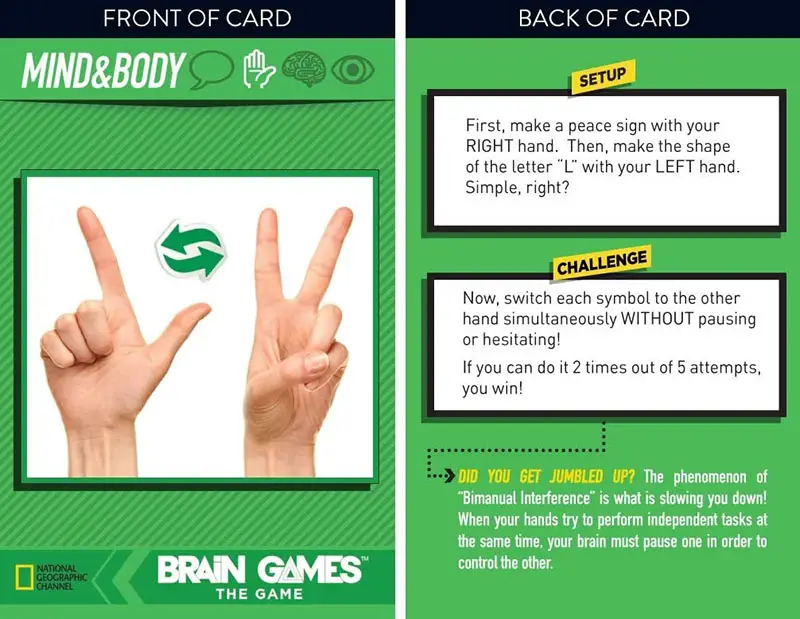 The reader silently reads the card to themselves so they understand how it will be played. Then the reader will Hold up the card so you can clearly see the picture on the front, and read the question or challenge on the back of the card ouT loud.