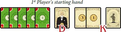 K.The second player receives 5 BEF, the third player 6 BEF, and the fourth player 7 BEF. Players place their Money cards face up in front of them.
