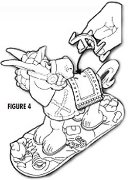 Push Buckaroo's bottom down until his back legs touch the base. Then push his tail down to lock him into place. See Figure 3.