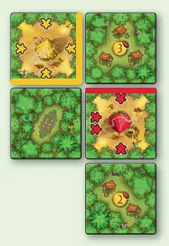 This will create a checkerboard pattern of Worker and Jungle tiles. The starting tiles have already determined whether you have to put a Worker tile or a Jungle tile on an unoccupied square of this pattern. The spaces where Jungle tiles must be placed are referred to as Jungle spaces.