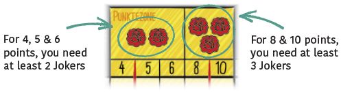 Did you roll that number of Jokers? Then you can immediately freeze the points in a color row. Take all the Jokers and circle the last cross in this color series.