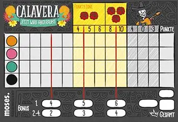 But that's not all: The skull has effects on your opponents. They now have to make crosses on their score sheet - whether they like it or not. However, you are the first to choose the color (or joker) from the remaining dice and enter a corresponding number of crosses in the appropriate color row.