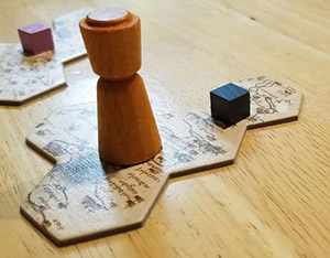 - Take 3 cubes of each color from the middle of the circle of territories and place them at random on the territories, 1 per territory.