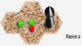 A common situation for a takeover is shown in figure 2. The black castle indicates that the black player controlled the territory when the Emperor last stopped there. He controlled the 2 green paladins and the white player the red one.