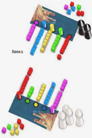 - Each player selects a color and takes a set of 10 'O- castles and a set of 5 numbered discs in that color.