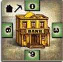 Example: A player who owns a bank and a mine, with one house and one hotel as a direct neighbor of his bank, receives a bank income of $12.