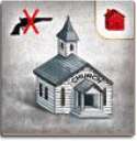 Special rules: A church is considered a house when calculating drugstore, bank, and saloon incomes. A church allows the player to prevent other players' attacks. All buildings of yours directly adjacent to your church cannot be attacked.