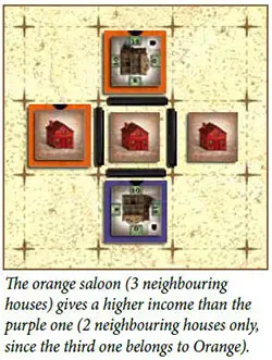 Each building brings money to its owner, depending on the buildings and houses in the vicinity. This action is automatic; there is no need to put a cowboy on a square to get this income.