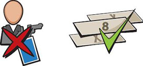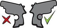 Note: The real gun is the one whose grip is complete. You can change the hand holding your guns each turn so that your opponents don't know which one is fake.