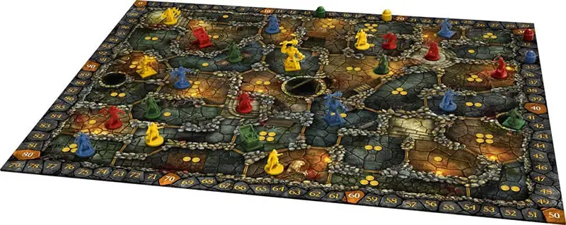 During the game, characters move around the dungeon, which consists of three types of spaces: staircases, pits, and rooms. Rooms are separated by walls and doorways.