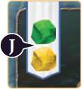 When playing a Crystal card, take the number and color of crystal(s) shown on the card J from the diamond-shaped bowls and place them on your caravan.