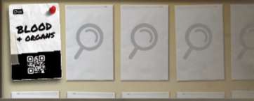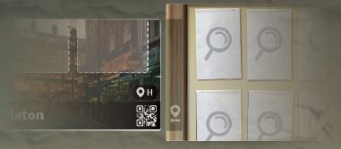 You progress in Chronicles of Crime by scanning Locations, Characters and Evidence Category cards. When the scan window is displayed, point at any QR Code on a card or board. Wait for the code to become green, then tap anywhere to trigger the scan.