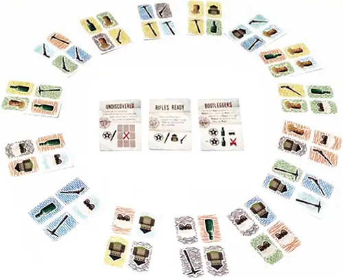 Shuffle the cards and randomly place 3 in the center of the table with their scoring condition face-up. These 3 cards show the special scoring conditions that apply to this game.