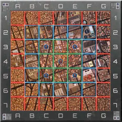 One side of the game board is divided into a 7x7 square grid. Use this side for the 2- or 4-player game. The other side of the board is used for the 3-player game. The board is further divided into three color-coded levels.
