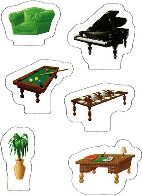 Place the furniture tokens onto their matching pictures on the gameboard.