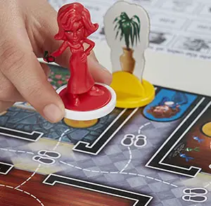 Roll the die to see if you can move characters, look under those characters, or look under furniture for dues.