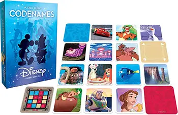 Codenames: Disney Family Edition includes an Advanced game play option. The basic game rules are the same, with a few differences. Instead of Easy Key Cards, Advanced Key Cards are used, denoted with Mickey icons on the back side, and feature a 5 x 5 grid instead of the basic 4x4 grid.