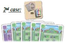 Example: The player may change their 4 green cards and 1 purple card to either 5 green or 5 purple cards.
