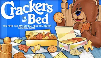 The little bear is as hungry.. .as a bear... and has a great big, open-wide smile. That's because this bear is waiting for some delicious crackers. You see, they're all broken in half and are hidden in the colorful bed.