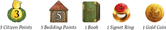 New lore in old books: You may discard 1 Book or 1 Signet Ring to receive 5 Building Points.