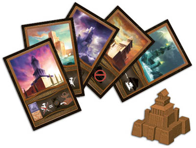 Before the game starts, randomly draw a number of Monument cards equal to the number of players. Place them face-up next to the game board. These are the only Monuments that players can build during the course of the game. Take the corresponding miniatures and return the other ones to the box with all the unused Monuments cards.