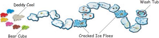 As soon as there are at least two ice floes behind the last bear cub, these floes are taken away. The first ice floe gets put back in the game box, while the others are laid between the next to the last ice floe and the floe with the wash tub.
