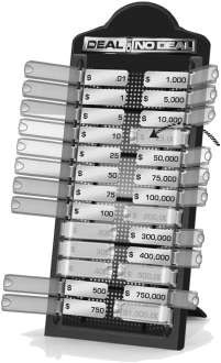 The contestant then chooses another briefcase, the case holder guesses, and that value is covered on the money board.