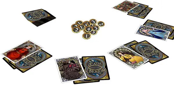Once all the powers of the cards are enforced, the player or the players having cards with the lowest value lose and steal one token each. Death always loses if it is in play. The round ends once tokens are dealt.