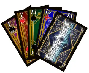 - 60 card deck in 4 suits (Diamonds, Hearts, Spades, Clubs)