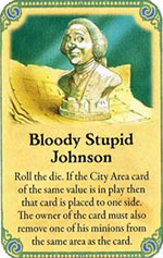 Roll the die. If the City Area Card of the same number is in play then it is set to one side and is no longer in the game, i.e. the power on the card is not in effect.
