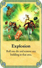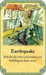 Roll the die to establish the area of the fire. If there is no building in the rolled area then the random event ends without effect. If there is a building in the area then remove it from the board and roll the die again.