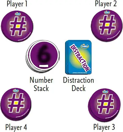 Shuffle the rectangular deck of Distraction Cards and place them in a pile, face down, within reach of all players.