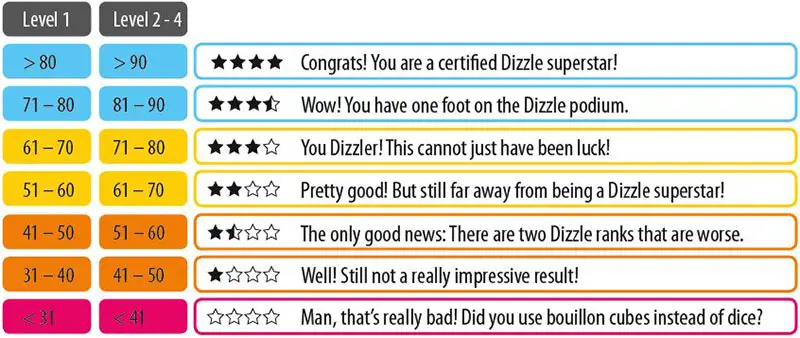 "Dizzle" can also be played solo. The goal of the solo game is the same, collect as many points as possible. The game ends after 10 rounds. The rules of the game stay mostly the same.