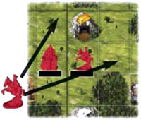 Example: Red would like to place a knight. Only the spaces indicated with arrows are legal. The spaces below the castle and knight are not legal because of the borders.