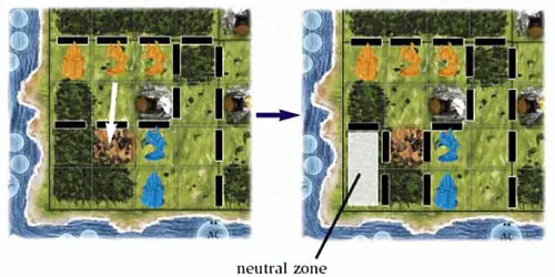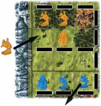 Example: Orange expanded into Blue s Domaine. Orange gains 4 victory points. Purple loses 6 victory points since two forests were lost to the neutral zone just created,