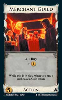 Merchant Guild![]() | Action | 5 Coin | +1 Buy +1 Coin While this is in play, when you buy a card, take a Coin token |
