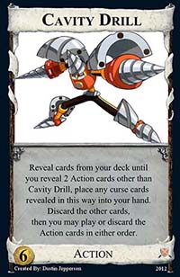Discard all other revealed cards, then you choose which order to play each of the Action Cards revealed using Cavity Drill, or you may choose to discard one or both of the Action cards.