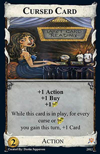 For each Cursed Card you have in play, you get +1 Card each time you gain a curse card and/or a curse token (