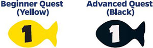 The experienced player(s) completes the black versions of the chosen quests while the beginner player(s) completes the yellow versions.