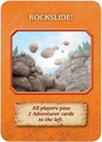 When you draw or reveal a Rockslide! card, immediately discard it, and then all players either pass two cards to the left, or one card to the right depending on the card drawn.