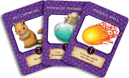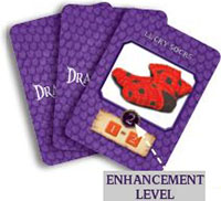 Enhancements bestow their owners with special benefits while exploring Dragonrealm. Enhancement cards do not count towards your hand size and you may use one or more at any time. Declare if you are using any one time enhancements before you roll.