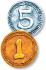 Keep your coins face-down throughout the game so opponents can't see your total. (You can always look).