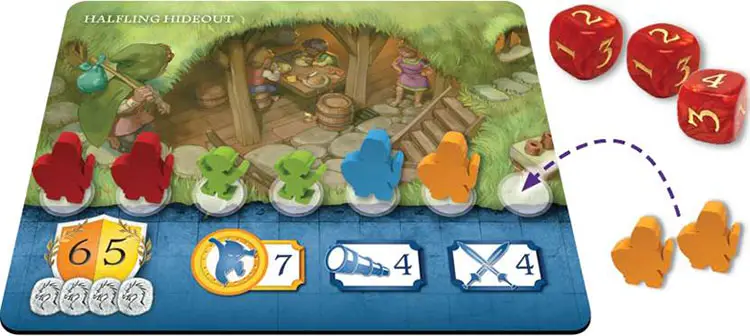 All players take back their adventurers, and the Halfling Hideout is replaced with the next card in the Location deck.
