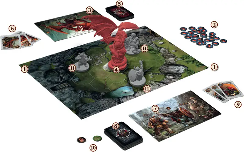The second player directs the dragon, whose purpose is to survive through the dwarf player's time limit. If the dwarf player is out of cards, the dragon escapes and wins the game. It is also possible, though rare, for the dragon to win by defeating all the dwarves.