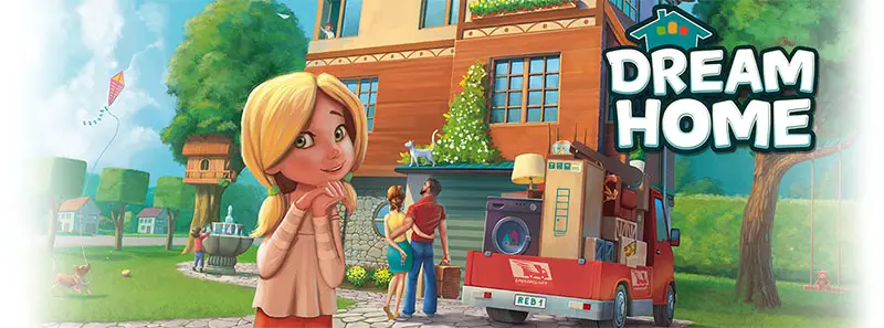 You get to design your own custom dream home from scratch! The game lasts twelve rounds. During each round, you add rooms to your home and decorate them with all kinds of accessories. When the deck of cards runs out, the game ends, and the player with the most points wins!