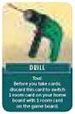 Drill - At the start of your turn, immediately before you choose which column of cards to take, you can discard the Drill to switch places of any room card on the game board with a room card on your home board.