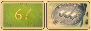 6. Each player takes 1 quarry start card and 1 grain start card, which he places face-up beside his player tableau. With fewer than 4 players,