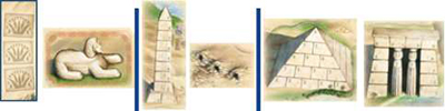 Now the players build at the 3 building sites from top to bottom: first the sphinx, then the obelisk/graves, finally the temple/pyramid.